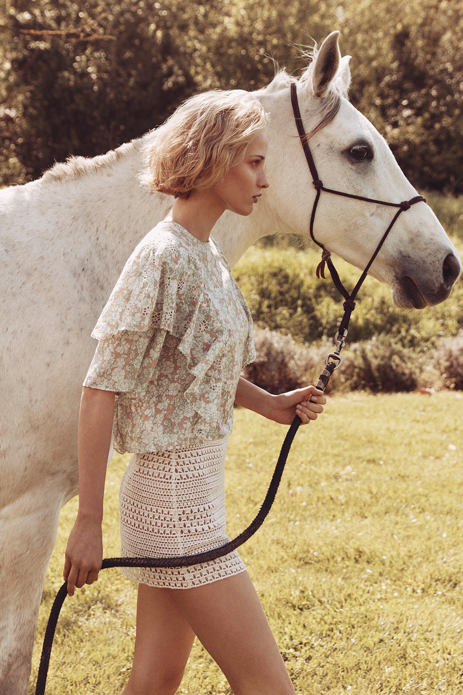 Of sun and sand. Cotton macramé shorts with side zipper and ton sur ton trimmings on the strap.