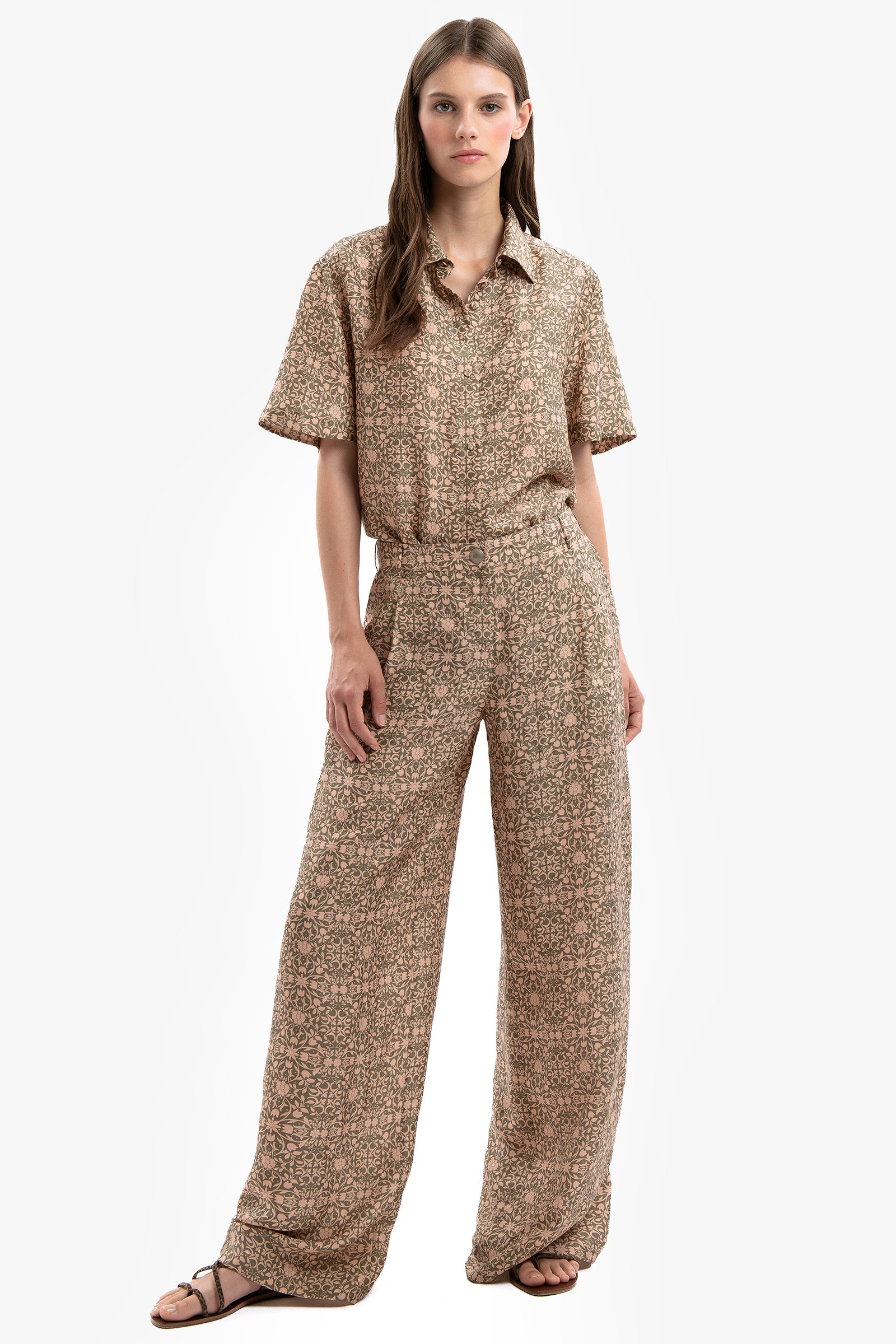 Camicia a maniche corte in stampa Alhambra. Chiusura con bottoni rivestiti.